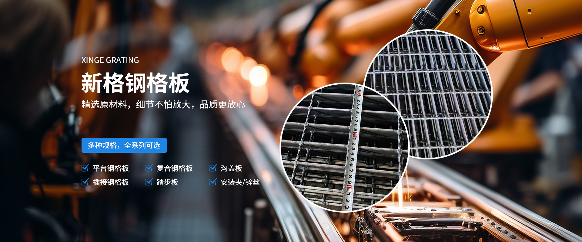 河南新格重工有限公司成立于2007年,占地36000余平方米,是河南省專注于鋼格板設計、制造、銷售的加工制造企業。公司一貫秉承“打造全國鋼格板基地”的企業理念,在“創新、務實、奉獻”的企業精神指引下,逐漸成長為一家具有現代化管理理念、優良的企業文化及靈活的經營機制的創新型加工制造企業。  公司采用目前世界上前衛的制造技術,由計算機控制的鋼格板壓阻焊機制造,機械手自動將橫桿橫放在均勻排列的扁鋼上,通過強大的電焊功率和液壓力將橫桿壓焊入扁鋼內,從而得到焊點固定、穩定性高、強度大的高質量鋼格板。公司擁有成熟的CAD設計、制造技術以及優良的工程設施經驗,獨立自主的進出口貿易資質,通過ISO9001資質體系認證。所生產的鋼格板系列產品從外觀質量、尺寸公差、焊接質量等方面均滿足客戶的需求。公司可按中國鋼格板YB/T4001.1-2007標準生產,也可按符合美國ANSI/NAAMM(MBG531-88)、英國BS4592-1987、澳大利亞AS1657-1985等標準進行生產。產品暢銷全國三十多個省、市、自治區,并有部分產品出口到國外,給上百家大型企業提供了堅實可靠的服務,得到了廣大用戶的一致肯定。  公司始終堅持“視品質為生命,視顧客為上帝”的經營宗旨,依托成熟的技術力量及良好的企業信譽,竭誠為廣大用戶提供高質量的產品及全方面的售前、售中、售后服務?! ∥覀內w新格人將帶著真誠的期望,一如既往地以具有競爭力的價格、高質量的產品為工程項目提供盡善盡美的服務,并希望與用戶單位建立長久有好的合作伙伴關系!
